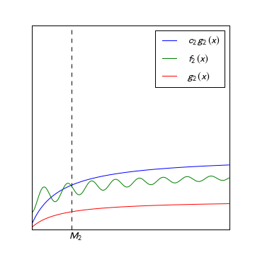 Before going to the general definition of Big Oh, let us note that in this and the following lessons, we will only talk about positive functions, i. e. functions whose values are positive real numbers. This is in order to simplify our definitions and properties of asymptotic notations a little. We will also assume that the function arguments are natural numbers. We will not demand the function to be defined and positive on all natural numbers, but only starting from some point (like $\log n$, which is defined and positive for $n \geq 2$). The function we are interested in will usually be the running time or memory consumption of an algorithm for given input size, which obviously satisfies these requirements (its value, i. e. running time or memory usage, is a positive real number, and the argument, i. e. the input size, is a natural number).