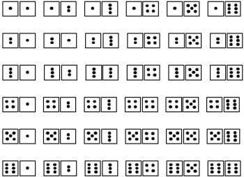 Thus, $\text{Pr}[\text{"the first result is a one and the second result is a three"}]=\frac{1}{36}$, but also $\text{Pr}[\text{"the first result is a five and the second result is a four"}]=\frac{1}{36}$, and so on.